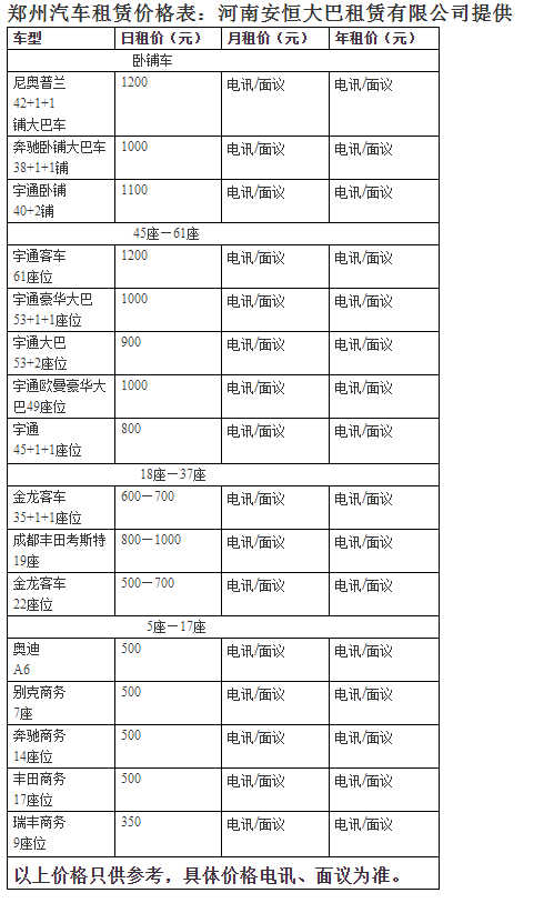 - 商務(wù)車(chē)租賃多少錢(qián)一天?選鄭州旅游大巴車(chē)租賃公司